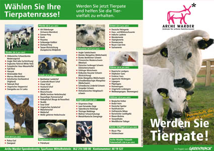 Unter dem Motto »Patenschaft, die Vielfalt schafft« werden über gezielte Mailingkampagnen Unterstützer für seltene und bedrohte Nutztierrassen angesprochen.